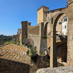 Von Manciano aus geht es etwa 18 Kilometer in südöstlicher Richtung nach Pitigliano. Diese Strecke führt uns durch sanfte Hügel und bietet immer wieder beeindruckende Ausblicke. Pitigliano, bekannt als "Klein-Jerusalem" aufgrund seiner historischen jüdischen Gemeinde, beeindruckt mit seinen in Tuffstein gehauenen Gebäuden, die spektakulär auf einem Felsvorsprung thronen. Ein Bummel durch die Altstadt und ein Besuch der Synagoge sind sehr empfehlenswert.